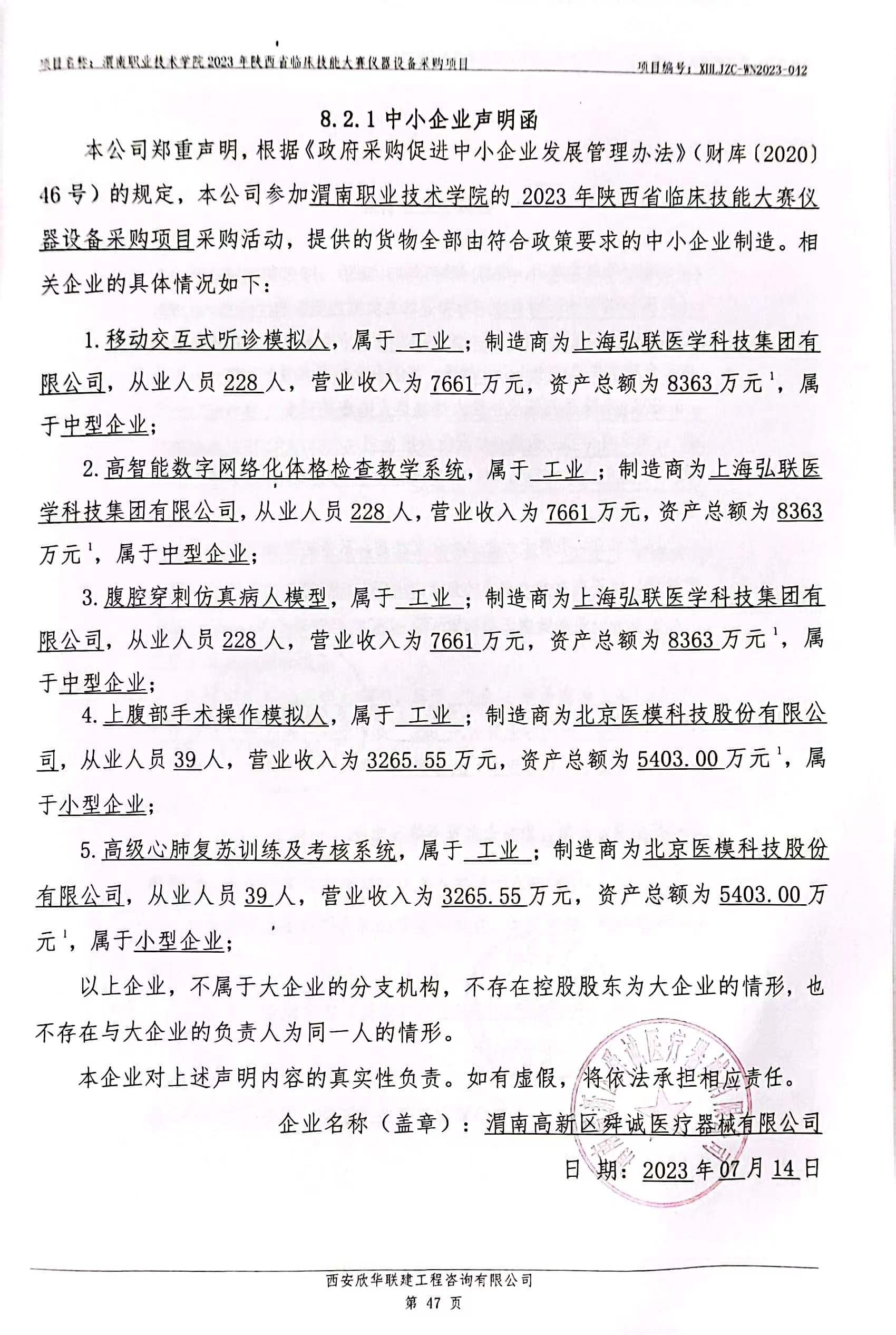货物类(渭南高新区舜诚医疗器械有限公司)